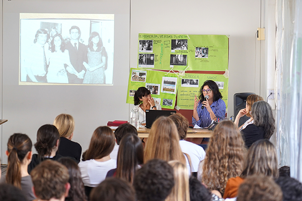 El cierre estuvo a cargo de dos paneles de intercambio en los que participaron hijas de desaparecidos (quienes son madres de estudiantes de nuestra comunidad educativa), escritoras y fotógrafas, quienes nos acercaron sus experiencias y dialogaron con los y las estudiantes sobre nuestra historia reciente.