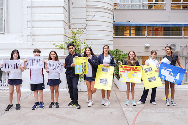 Luego, se realizaron talleres de fotografía y memoria: estudiantes de 5º y 6º año coordinaron propuestas junto a 3º y 4º. Compartieron un acercamiento reflexivo a través del análisis de imágenes de la época.